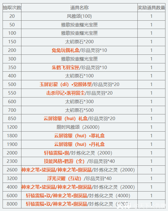 活动奖励:鸾翼流银、封·炼化之灵*200、阴阳碎片*20、太初原石*20、草精七彩果*5、羽灵珠*5、灵兽经验丹*500W、英魂溟魄丹*2000、太阴星光匣*1、满200减100折扣券*1