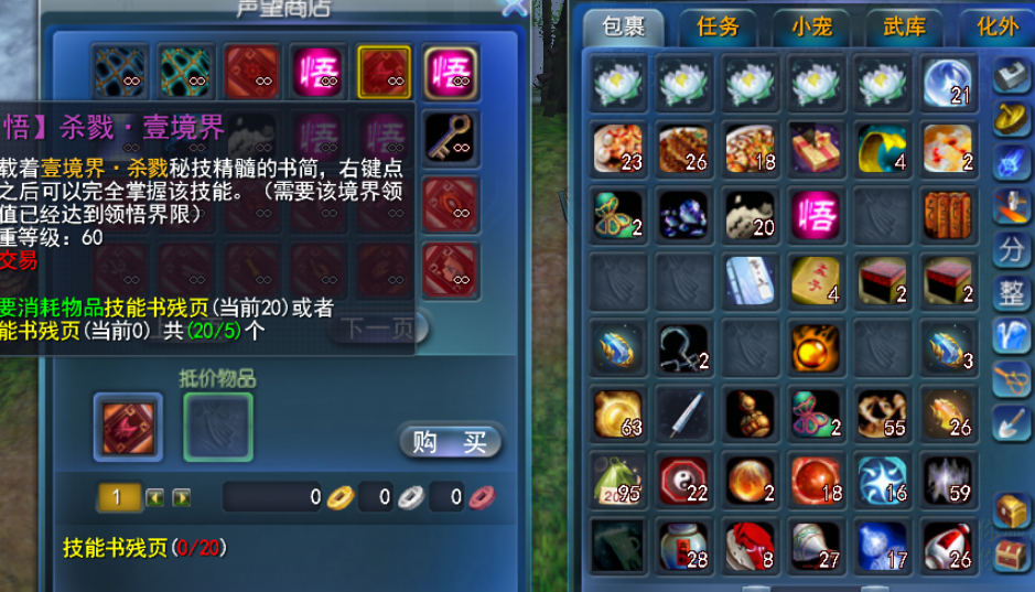 | 我记得技能书残页只能换悟和门派技能,杀戮、猛烈咆哮什么的只能买啊。 |