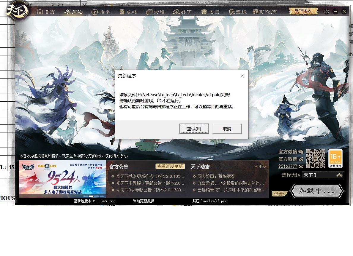 今天更新开天引擎结果一直提示有个文件不能更新