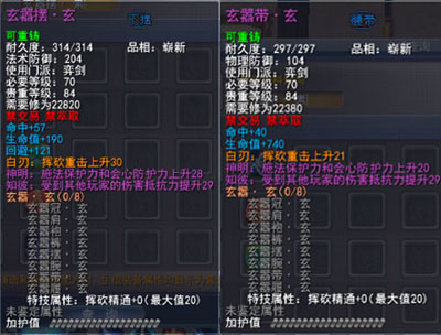 装备数据明细(素、玄) |