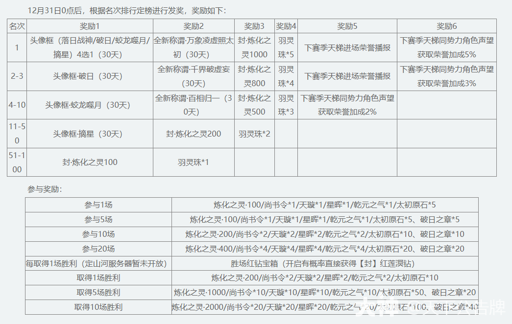 其中,神启等级段将启用全新赛制,请各位少侠注意。