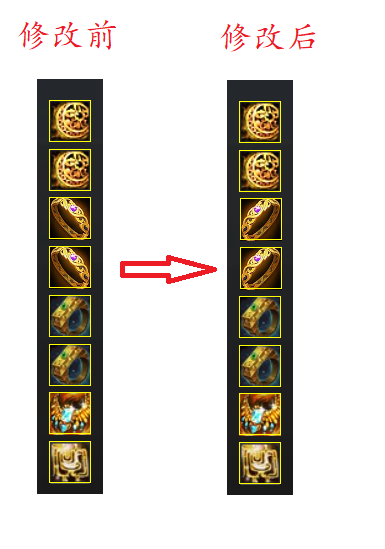 | 这个是为了和戒指的图标区分开,且以往的很多手镯都是这个朝向的,比如战场手镯,为了和以前的习惯保持一致才设计这个朝向的;手镯本身做了很多镂空的细节设计,所以在厚重感上比如戒指会略有不足,我们也尝试过更厚重或者更大的版本,观感上会很拥挤,所以综合用了这款设计。当然我们依然会再看是不是很多少侠依然对这个图标不满意,那么我们就去返工重新设计 |