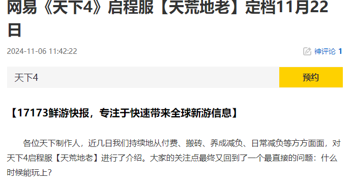 他们在17173发了天下4的软广,你说我们要不要去冲下它? https://news.17173.com/content/11062024/114222725.shtml 话说17173说真话,相对能保存的住。