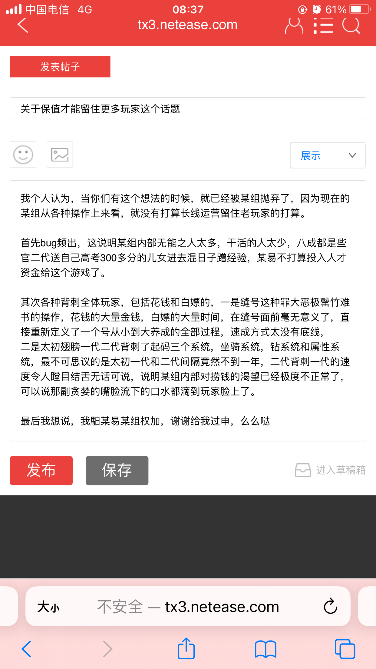 本帖最后由 坤灿 于 2025-5-13 10:43 编辑 倾听你的美丽 发表于 2025-5-13 10:19 北京 但是在这个消费降级的大环境里,WY确实是往这个方向走的,你就看24年就开始的外观背刺、25年的每天上线外观免费送、各种活动的白嫖物品大量增加、乃至正在进行的缝号,都是在往整体低氪的路上走,至于说是保持以前那种重氪的路子能活下去还是这种低氪的路线能活下去,那就看几年后就好了,毕竟经营权在人家那里,人家愿意怎么调整路线那是人家的事,至于说亏钱,我自己亏的更多,20年底买的8钻小翅膀不到9W装瓶的号,到现在打造成了快15W的号,二十几个达不溜进去了,现在卖号顶多几万块,你能咋说,只能后面不投了认栽,以前投进去的也就投进去了,大环境这样没办法,就跟现在的房价一样,眼看着腰斩也卖不出去,算算账卖了亏本,不卖又一天天降,跟看CBG一个心情,可个人又能咋样呢。 |