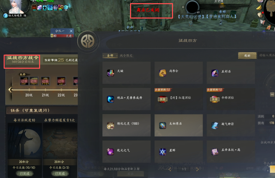 | 征战四方·荣耀大荒战令将在2025年12月24日0点到期,届时将无法再进行战令等级升级及奖励领取,请各位少侠注意。征战四方声望兑换商店将在2026年1月7日0点关闭,届时将无法再进行道具兑换,请各位少侠注意。 |